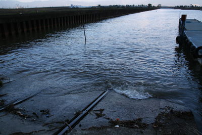 マリーナのスロープもご覧の通り、波に洗われています。