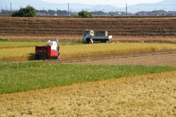 マリーナ周辺の田んぼで稲刈りが始まりました。